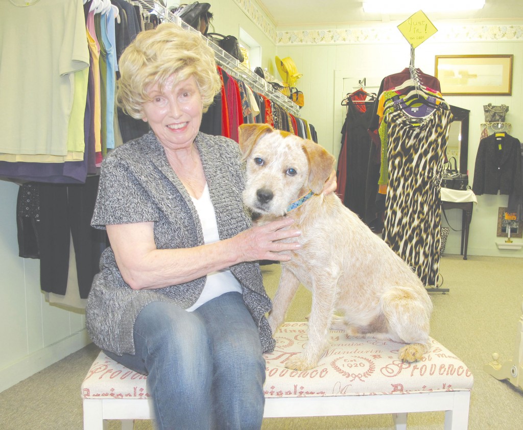 Just Around The Corner, a women’s clothing consignment shop in Ridgeway, is once again protected by a guard dog . . . well, sort of. After the death of her beloved 20-something-year-old Labradoodle named Rags last year, the shop’s co-owner Judy Miller said she’s missed her constant companion who went to work with her every day. While Rags probably slept more than he guarded, he was a customer favorite. Recently, Miller adopted a new pet from the Fairfield Animal Adoption Center, a 1-year old Airedale/Terrier mix named Beck. According to Miller, Beck is settling into his store duties just fine, greeting and wagging his tail every time a shopper enters. “I miss Rags so much, but I’m already growing to love this one,” Miller said, scruffing Beck’s ears. “It’s great having a dog in the shop again. And,” Miller added, “I hope all Rags’ shopper friends will stop in to meet Beck.”