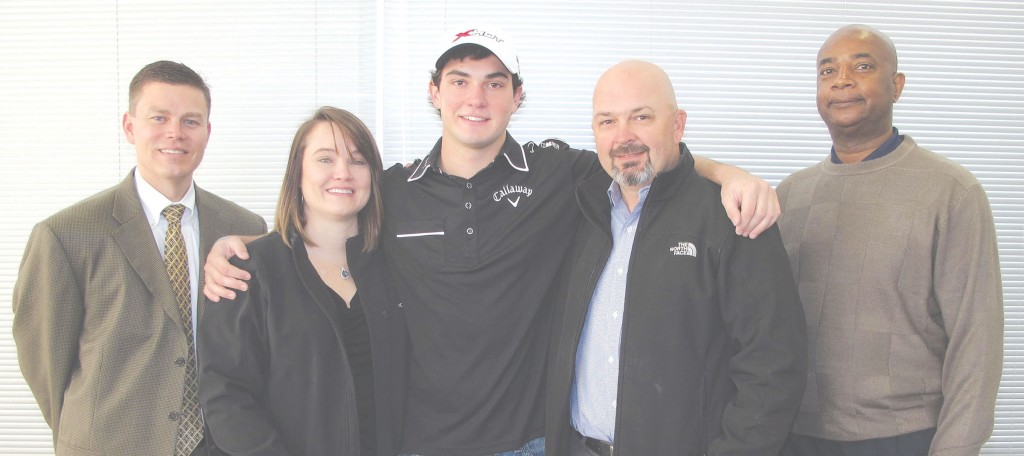 William Hinson (center) with BHS Principal Keith Price, mother Jennifer, dad Edward and BHS Athletic Director Vince Lowry after William signed on the dotted line with Callaway Golf.