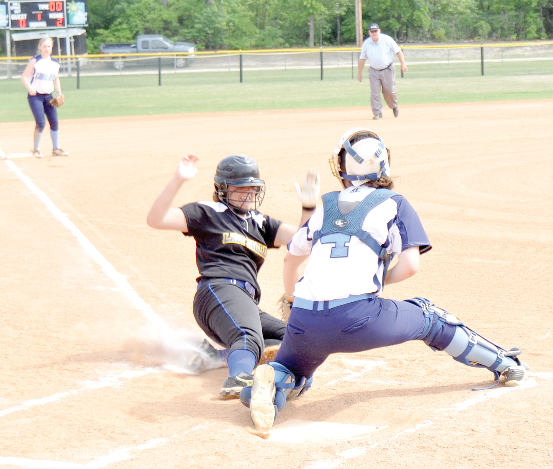 The Lady Cavs jumped out to an early 2-0 lead after leadoff hitter Kay Manuel reached on an error in the bottom of the first and was driven in on an RBI single by Brenda Watts. Watts came around on an RBI by Anna Outlaw, who was thrown out at first by Eagle third baseman Alyssa Atkerson.