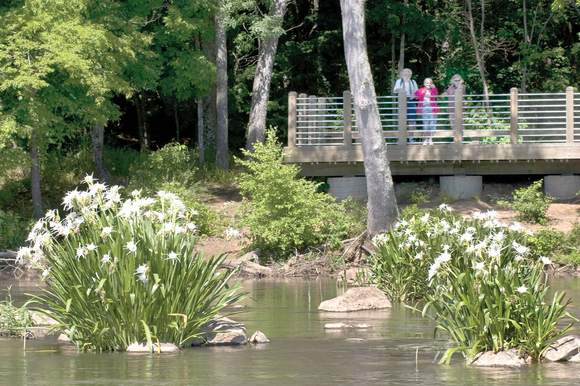 Fishing, boating and just watching nature are fine activities to enjoy. Playground equipment is on hand for kids. Hike the interpretive trails and see the foundations of an early 1800s mill site. Pack a picnic and enjoy it at a shelter. Spend time in the museum, a restored Great Falls Canal lock keepers house. Check out its pictorial displays. (Open by appointment only. Call to schedule a visit.) You will love every minute of your visit. Keep an eye out for bald eagles, and best of all go when the rocky shoals spider lilies are in bloom from mid-May to mid-June.