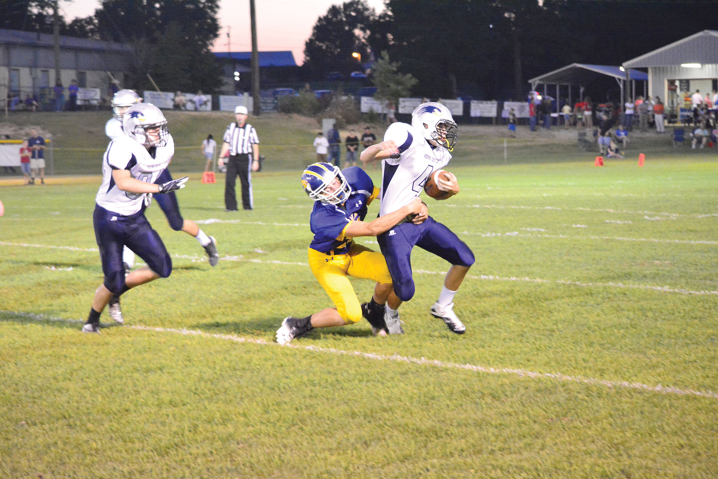 Being practically in the basement didn’t slow the Greenwood Christian team down any, as the quickly put together a scoring drive, led by Hinzman, that drove the ball all the way down to the RWA 3-yard line, where he made the short run for the score with 3:45 on the clock. Eagles Conrad Sharpe and Nic Stilwell stopped the 2-point conversion attempt and the score was 12-0.