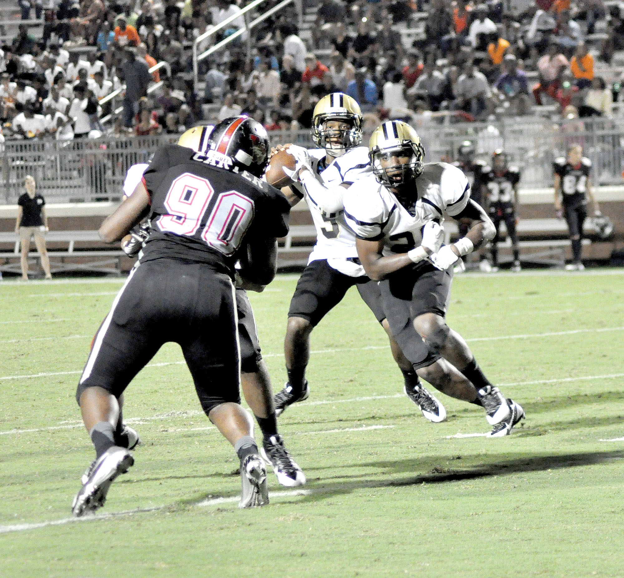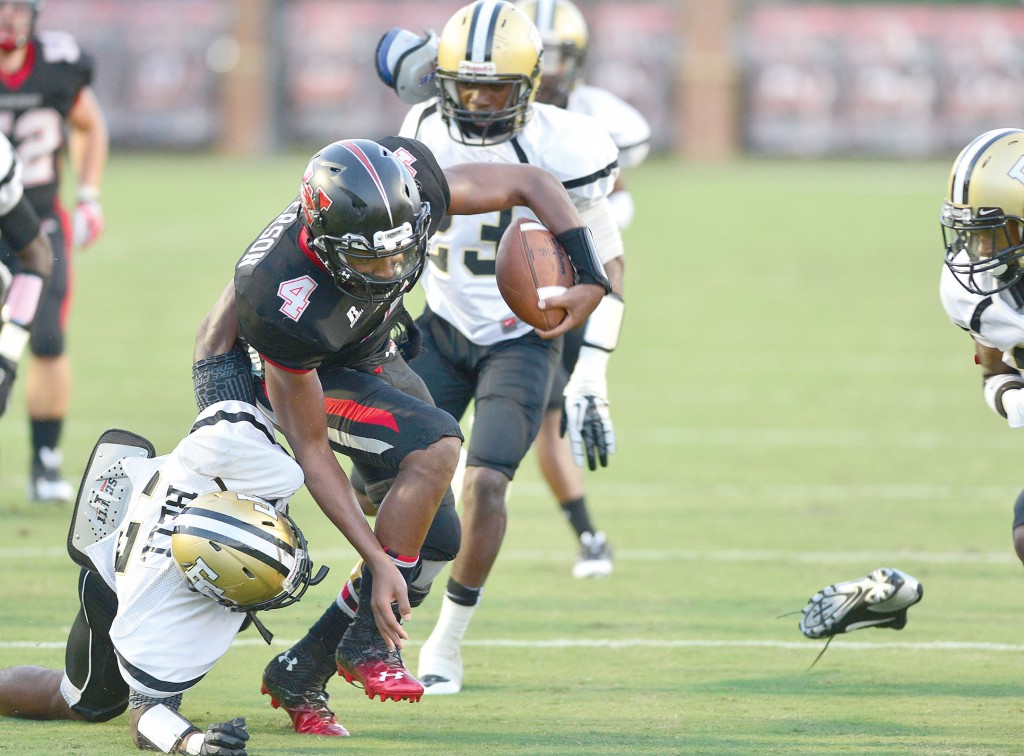 “Hopkins made probably the biggest interception I’ve ever seen,” Davis said. “(Patterson) is athletic, but we’re athletic, too. That offsets a lot of stuff. He can run, but we can run. We were able to make some plays and have him kind of running sideways. We were able to make him play left-handed, pretty much.”