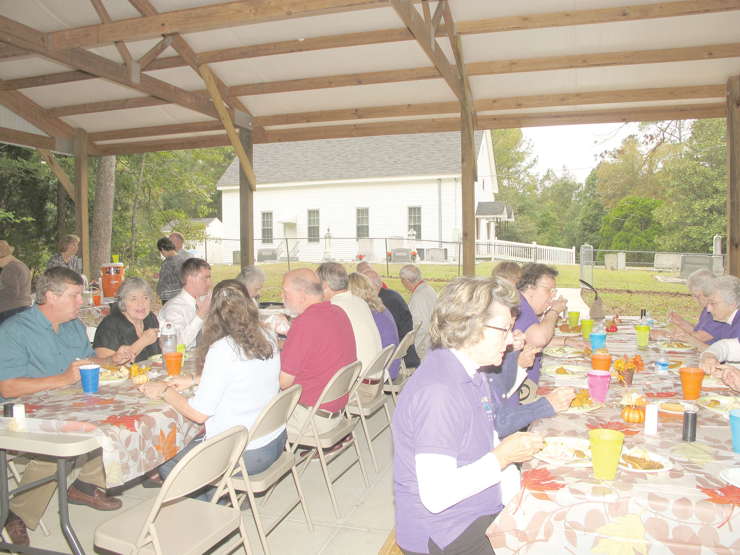 The Oasis Choir from Trinity UMC provided music and, following the service, the members did what they’ve done for more than 200 years – gathered in the side yard of the church for ‘dinner on the ground,’ prepared by the women of the church. And until only three years ago the dinners were truly a picnic on the ground. But this homecoming dinner was not. It was spread beneath a fine picnic shelter constructed on the edge of the woods next to the historic church.