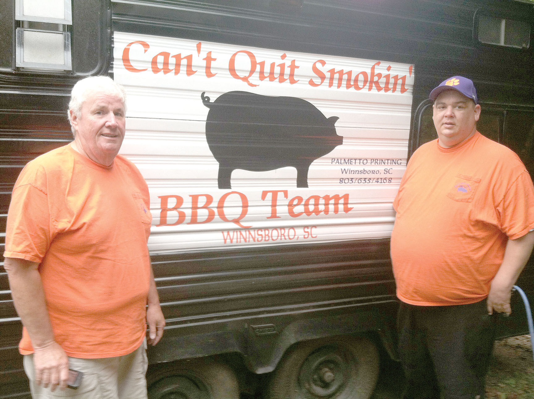 George King (right), pit master of Can’t Quit Smokin’ BBQ, and his partner, Gary Freeman, will be serving up the goods at this weekend’s benefit.