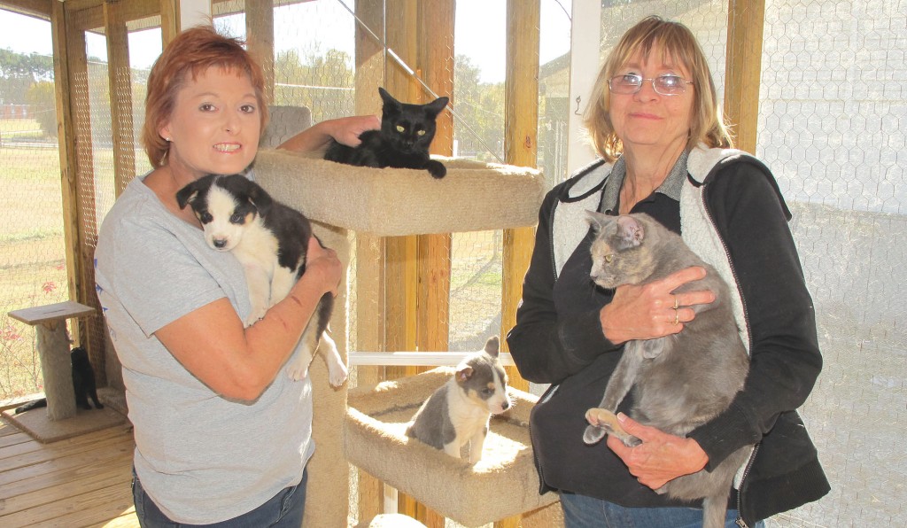 Shirley Locklear, president of the Hoof & Paw Benevolent Society, and Janice Emerson, Adoption Coordinator with Fairfield County Adoption Center, with some of the cats and puppies available for adoption at the Center.
