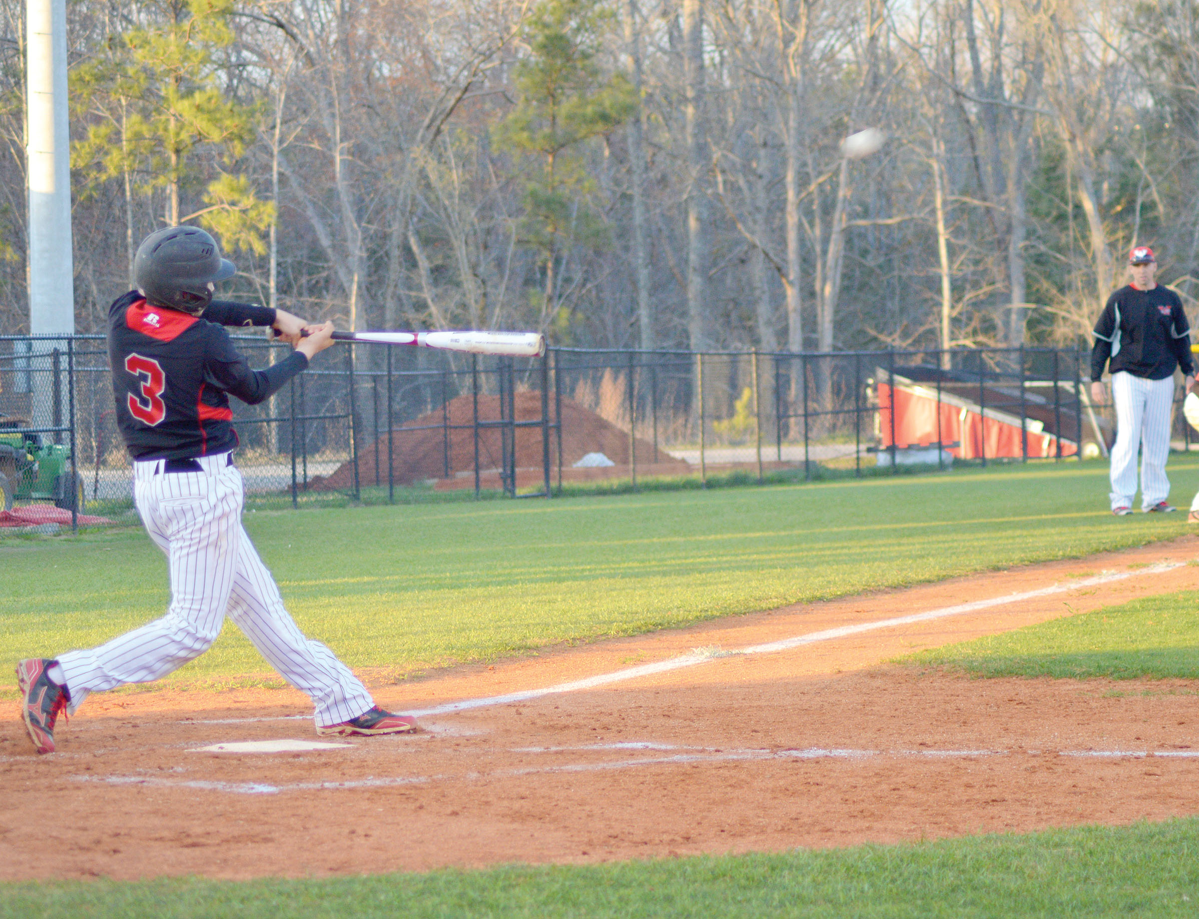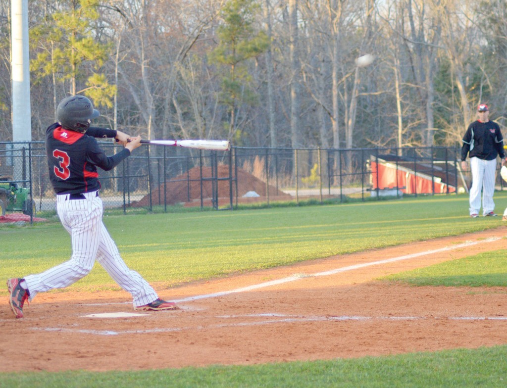 Dreher’s senior hurler Seth Kays looked shaky in the Friday evening twilight. As the shadows stretched in crooked fingers across the diamond in the bottom of the first, Kays struggled to find the strike zone, walking the first two Redhawk batters – T.J. White and Matt Kiely. Kays rebounded to retire Ray Branson, but a perfectly executed sacrifice bunt by Jackson Evans pushed the runners to second and third. With one out, Austin Garner stroked a 3-2 pitch into right-center for a 2RBI single and the Redhawks were on the board.