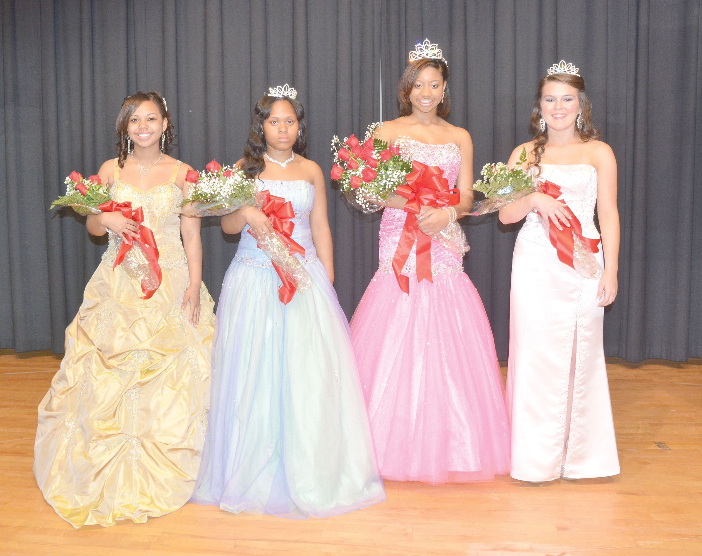 Young ladies from Fairfield Central High School put their talents on display Saturday evening at FCHS’s annual pageant. The competition was close, and expectations were high, with judges ultimately selecting four outstanding young women from an outstanding group. Sophomore Asia Pete (left) was named Miss Congeniality, junior Shantorrah Jackson-Davis (second from left) was crowned First Runner-Up, junior Katlyn Haney (far right) was crowned Second Runner-Up and junior Meagan Cornelius (second from right) was crowned Miss Fairfield Central High School. Congratulations to all the lovely and talented young ladies of Fairfield Central.