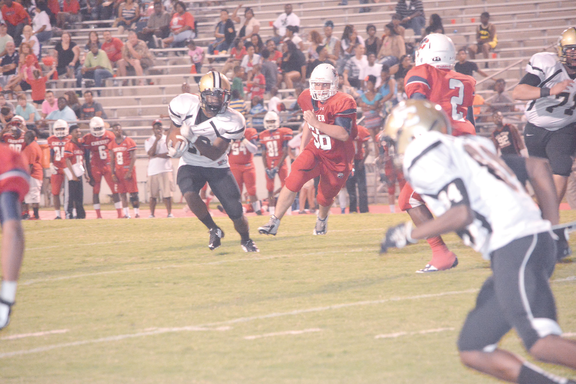 Fairfield Central’s Jerrell Suber-O’Neal (22) finds running room against the Chester defense. (Photo/Joe Seibles)