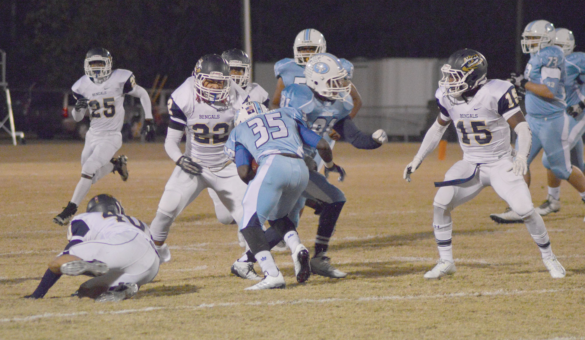 At the end of the first quarter the Bengals had an upset on their mind, leading 7-3. However, halfway through the second quarter the Bruins engineered a demoralizing 13-play, 90-yard drive for a touchdown. South Florence converted two third-downs on the possession and on a fourth-and-1 at the Bengals’ 5-yard line, Jones hit David Vereen on a slant route in the end zone.