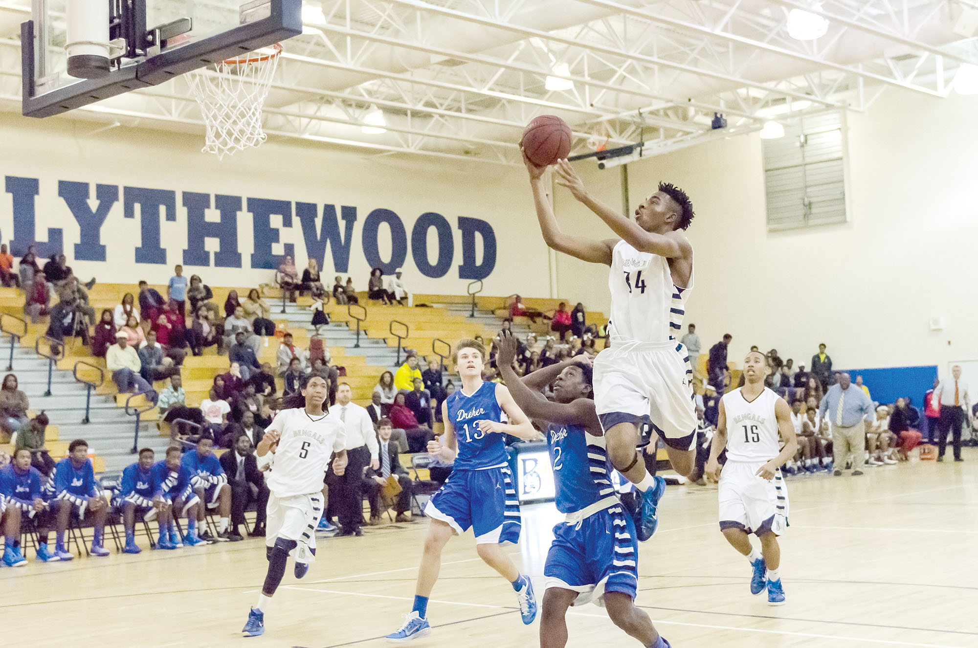 The first quarter had eight lead changes as the two squads traded scoring combinations. With Blythewood leading 13-11 late in the first quarter, Trae Churn sent the Bengal fans into a frenzy when he threw down an alley oop. Churn scored nine of his team-high 21 points in the first quarter to fuel the Bengals’ 17-11 lead.