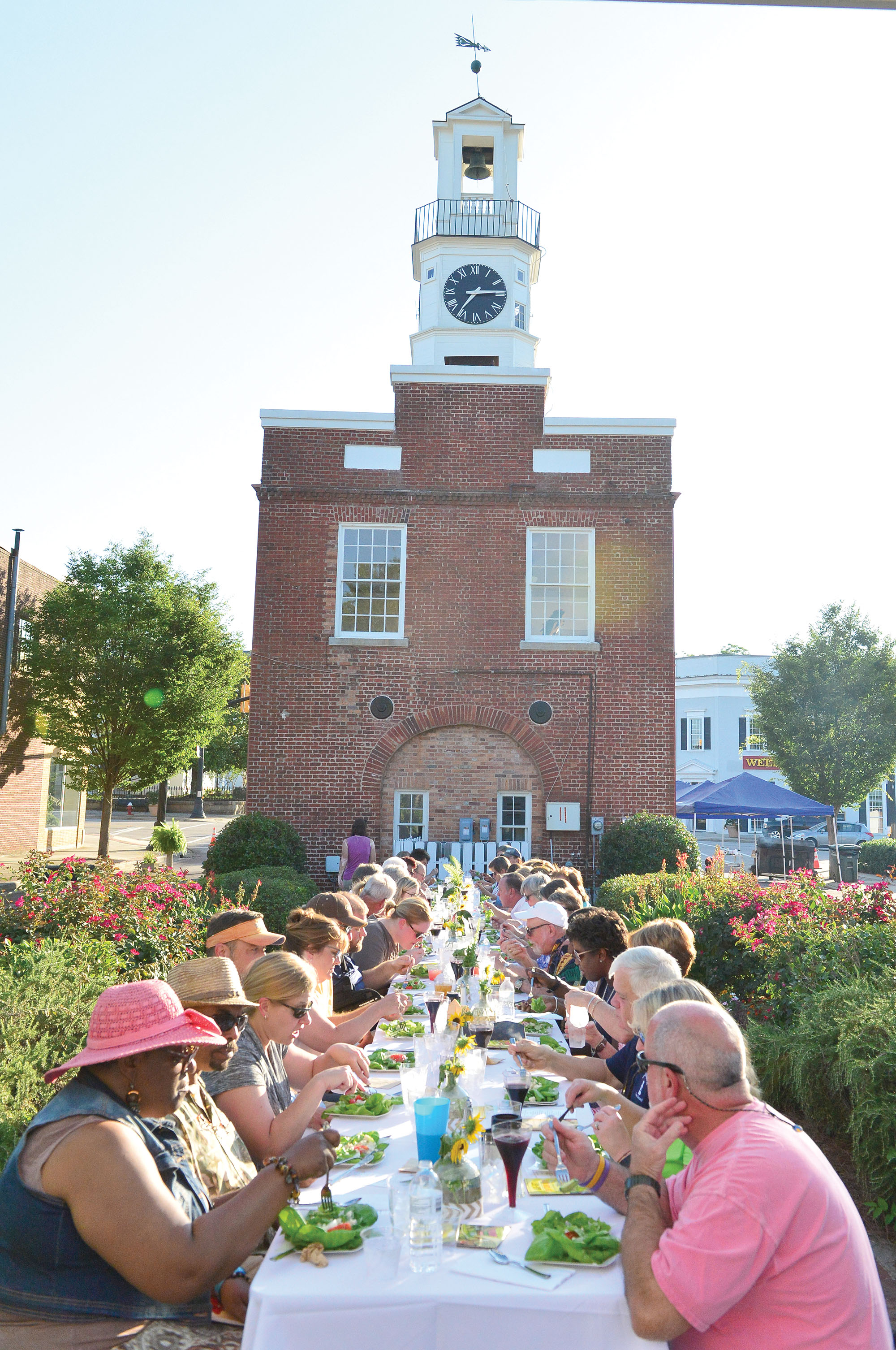 This year’s Fairfield County Ag + Art Tour opened grandly with 75 diners enjoying a Farm-to-Table dinner on the promenade in the street behind the clock tower in downtown Winnsboro on Thursday evening of last week.