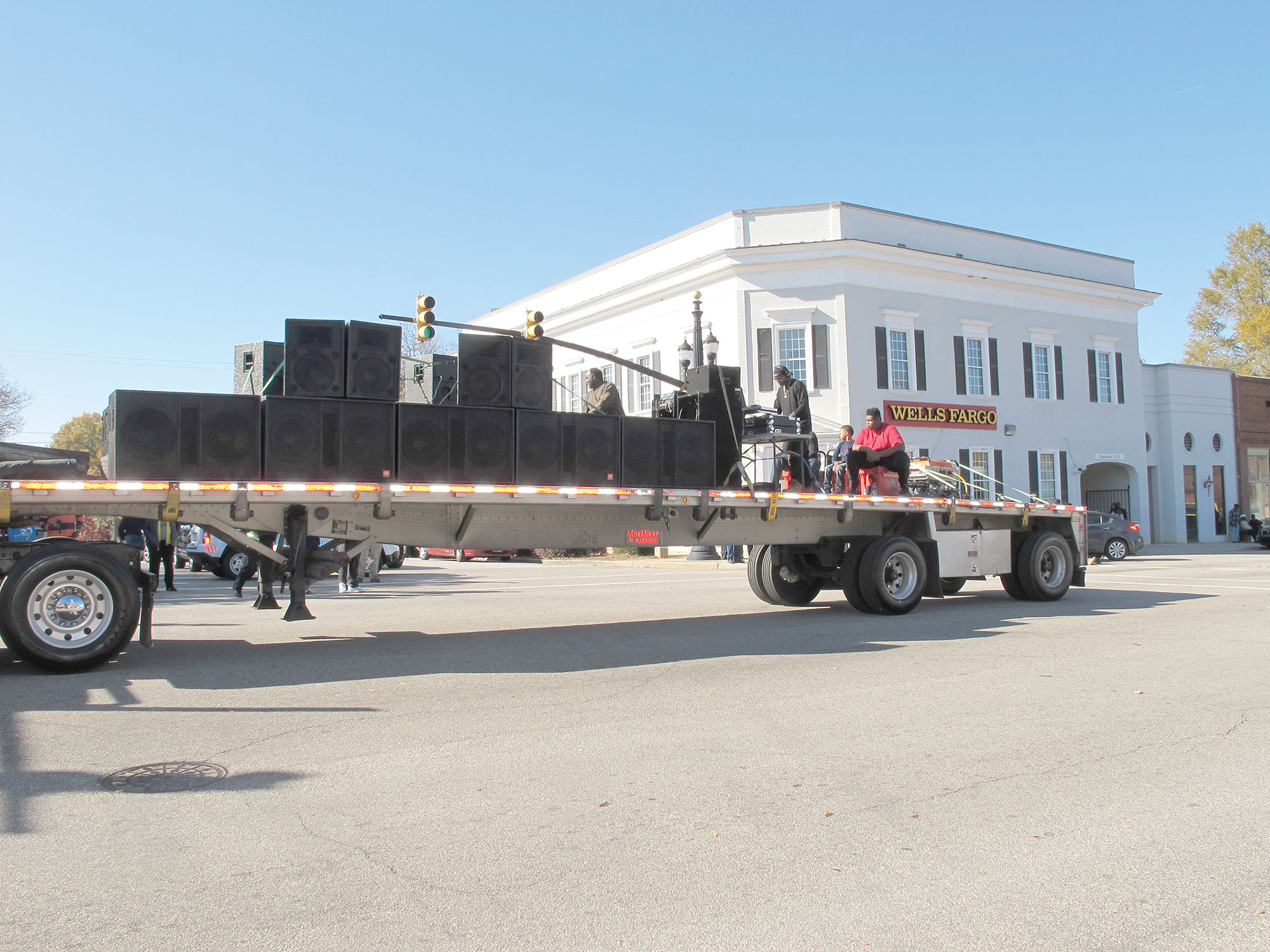 Members of the Fairfield High School Alumni Association shower Congress Street with music of their era from the back of a big rig during their Tiger Parade last Saturday. After the parade, classmates from the old segregated high school gathered at their former football field on Garden Street for tailgating and fellowship.