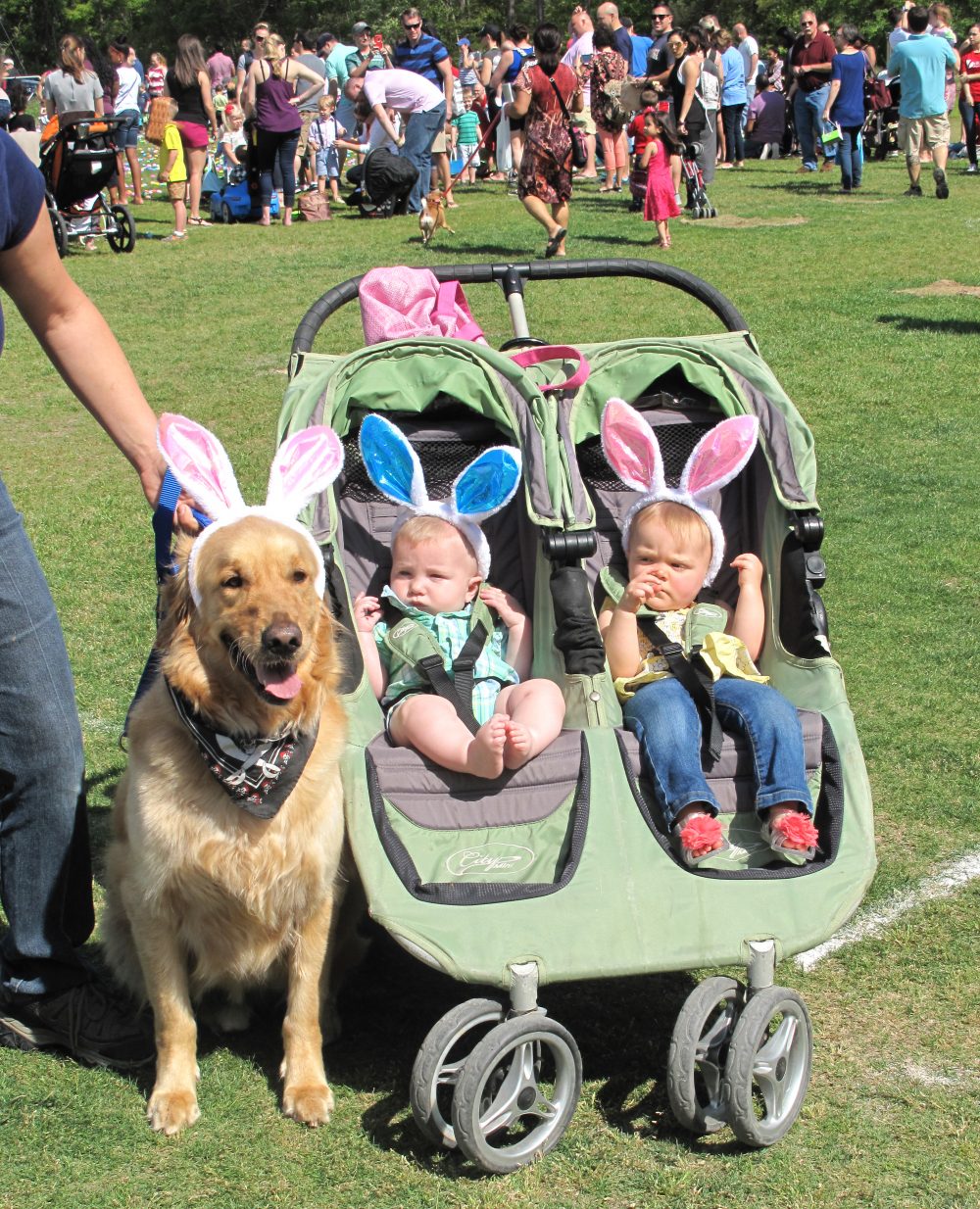 Striker Barton, his sister Olivia and their Golden Retriever Buddy were all ears for the occasion, which was attended by hundreds of families.