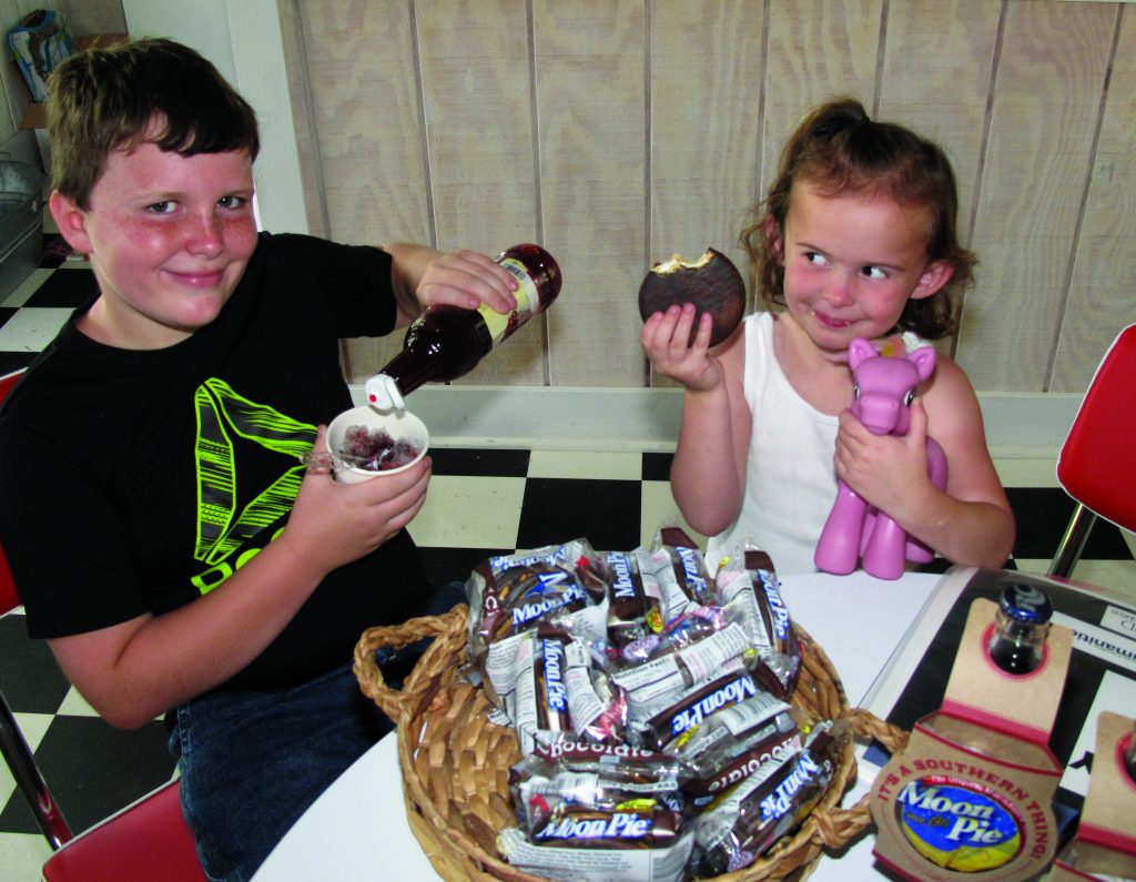 Harris McLean, III, 9, and his sister Hattie, 5, sample some of the 50s snack foods (Moon Pies, RC Cola and handmade snowcones) available during Saturday’s closing day of ‘The Way We Worked,’ exhibit at the Nord House in downtown Blythewood. The exhibit, sponsored by the Smithsonian Institute, was brought to town by the Blythewood Historical Society.