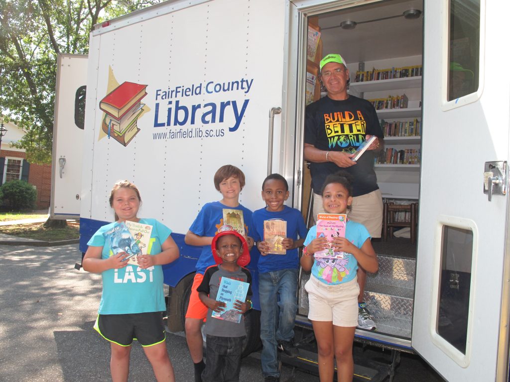 The Fairfield County Library has revived the Bookmobile after 10 years. For those who like books brought to their doorstep, contact the Bookmobile librarian John McCutchen at 635-4971. Library Director Eric Robinson and friends pick out a few good books for summer reading. From left: Caroline Talbert, Charlie Bonds, Deyonta Sampson (in the fire fighter hat), Sebastian Heath, Robinson and Jakiera White.