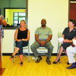 Bertha Goins, Councilwoman for the Jenkinsville area, welcomed guests and recognized the county and state dignitaries present and presented plaques of appreciation to County Administrator Jason Taylor, who was out of town, and Deputy Administrator Davis Anderson. State Representative MaryGail Douglas spoke to the community about their long awaited recreation center and specifically thanked Bruce Wadsworth for his persistence and pressing the Council to build the center that had long been promised to the community. After Anderson raised the flag the group cut the ribbon and then at hotdog lunch prepared and donated by The United Lodge #401.