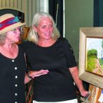 Pelham Lyles, Director of the Fairfield County Museum, and Jayne Bloomberg of Ridgeway discuss one of the plein air paintings on display Saturday. | Photos/Barbara Ball
