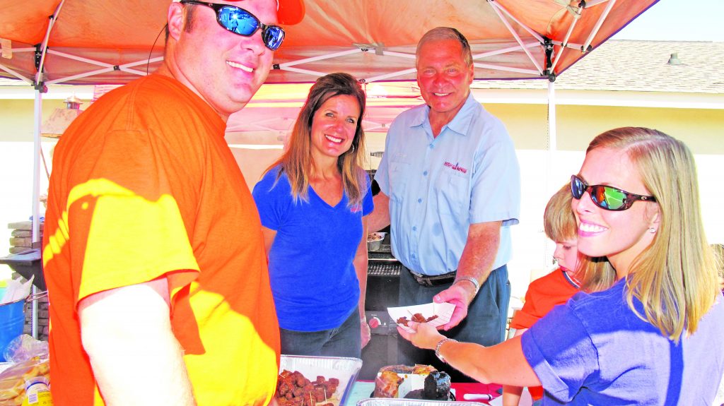 Johnny and Frances Porter, center, served grilled sausage to Brad and Sallie Williams and their son, Brady, 3, during three days of celebrating the grand re-opening of Porter Gas Service in Winnsboro last week. From 9 – 5, Thursday, Friday and Saturday, the Porters invited residents to tour their all-new showroom featuring grills, fireplaces, outdoor kitchens and much more. A steady stream of customers and residents were served free barbecue, hamburgers, hotdogs and sausage grilled on the store’s products. There were a number of door prizes and giveaways including a Holland gas grill. Celebrating 58 years of business, Porter Gas is located at 349 State Hwy 200, Winnsboro.