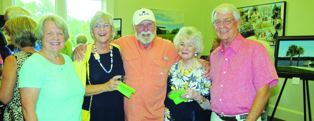 Visiting with the artist, center, during the reception are art lovers Kay Addy, left, Frankie McLean, Branham, Mitie McLean and Jim McLean. | Photos/Barbara Ball