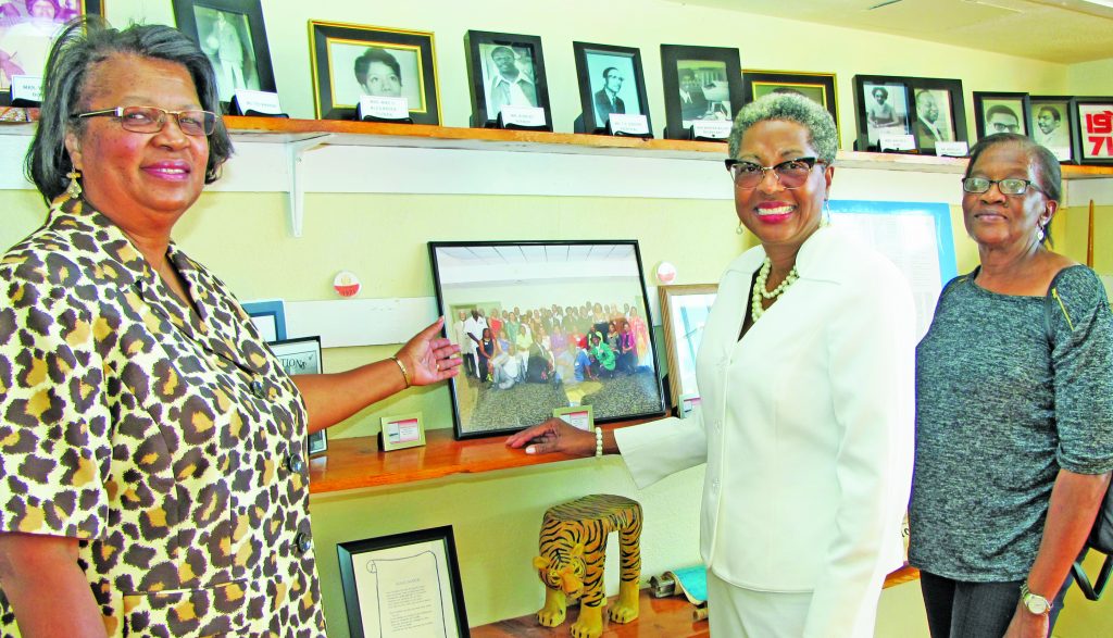 Fannie Ford, Easter Samuels and Dorothy Smith, members of the class of ’71, admire the walls of Fairfield High memorabilia, including their class picture. | Photos/Barbara Ball