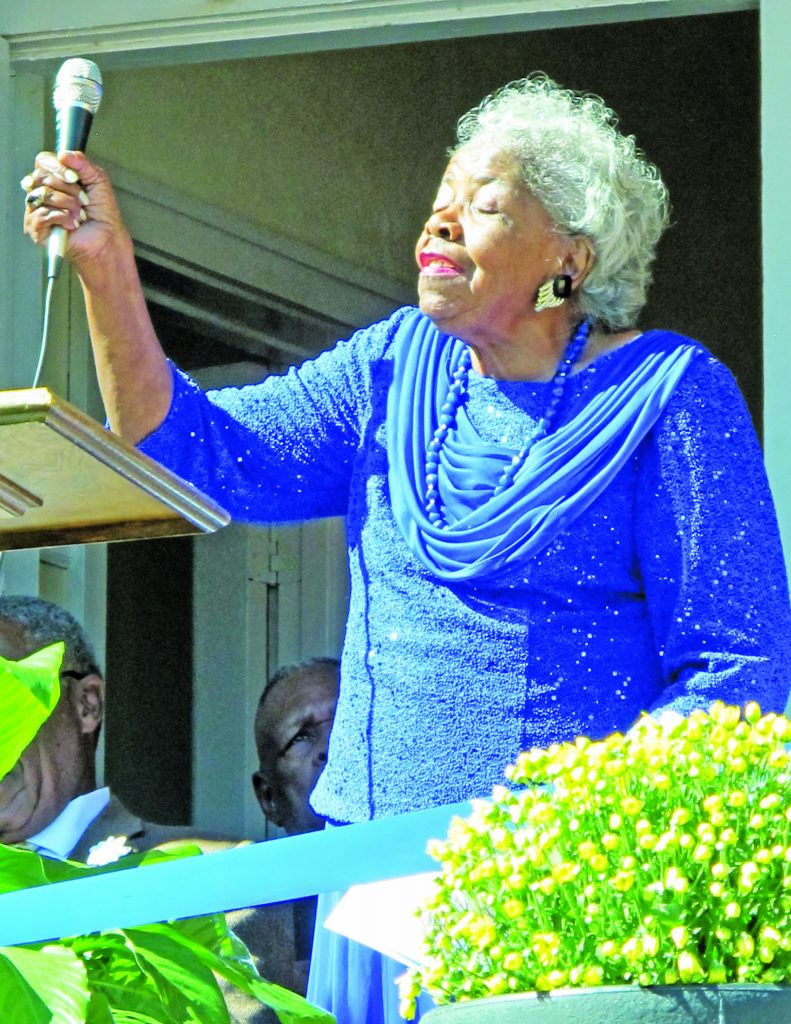 Following opening ceremonies Alumni President Don Prioleau and Vice President Robert Davis introduced town, school, county and state dignitaries. An entertaining welcome speech by Eva Armstrong brought the house down. Fannie Ford introduced alumni officers and Janie Davis gave a brief history of the school.