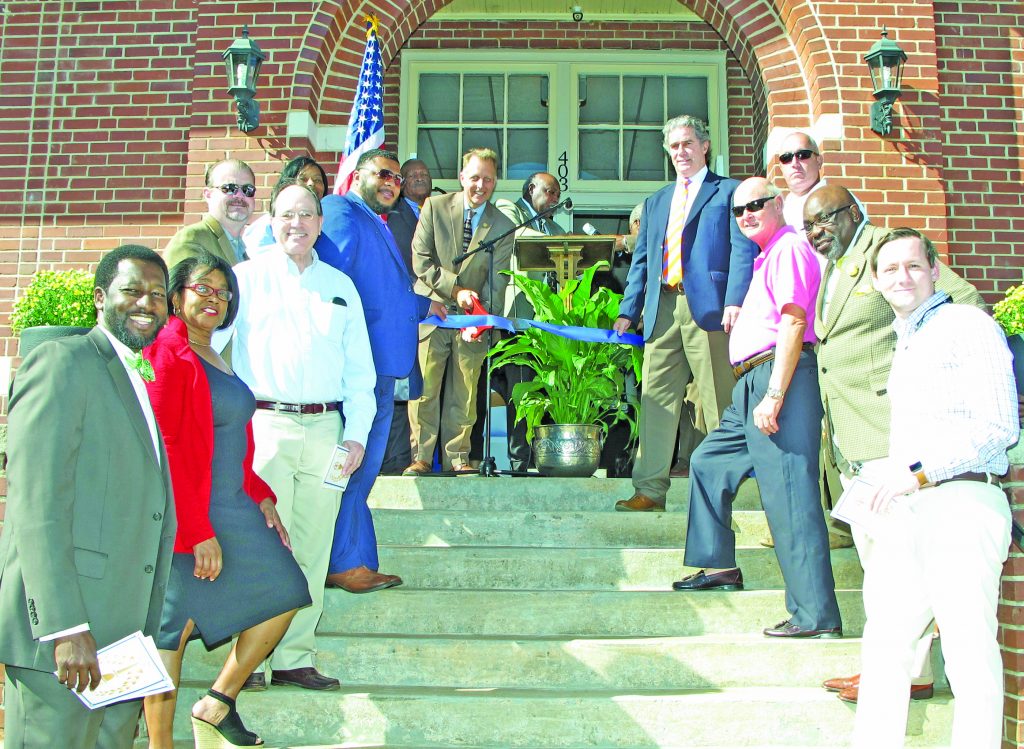 Senator Mike Fanning cut the ribbon held by a collection of members from County Council, Town Council, School Board and Alumni Officers. (Look for more photos in next week’s Voice.)