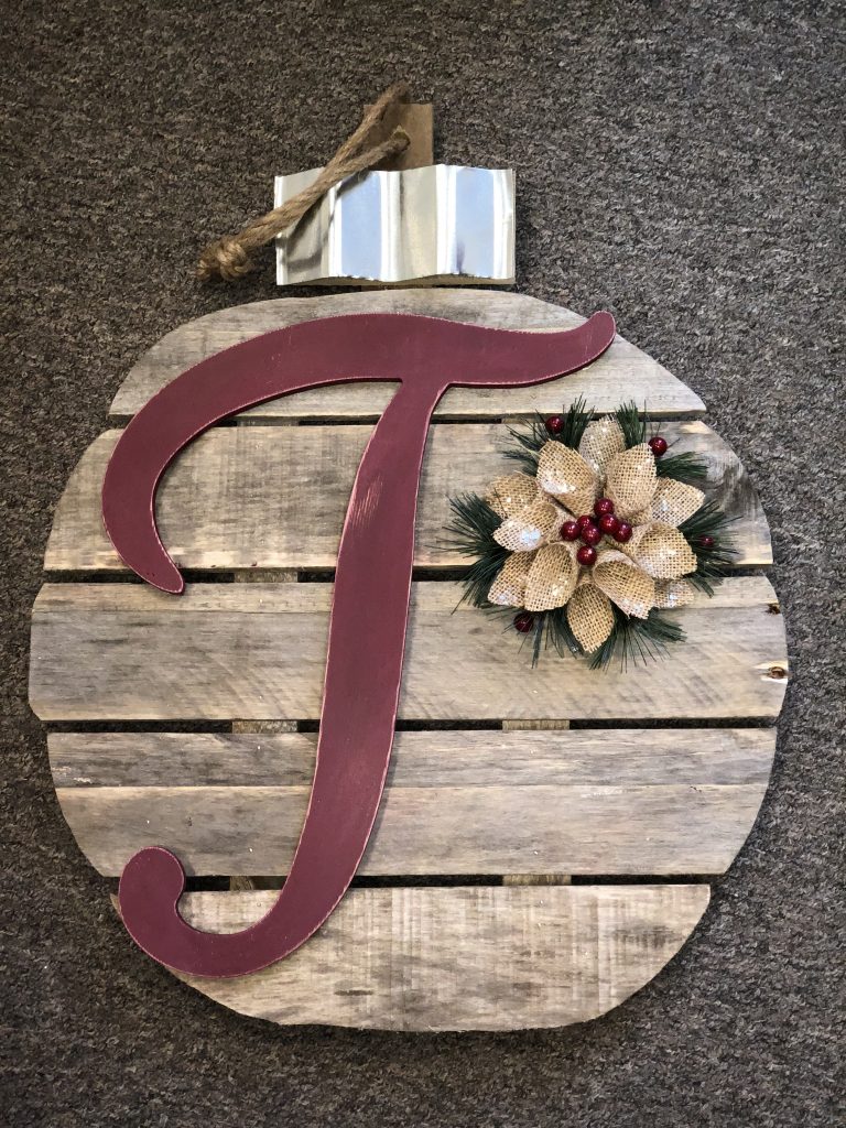“I fell in love with watching an old wooden pallet or piece of discarded barn wood become a new piece of art that other people enjoyed as much as I did,” Kirkland said. “The fun starts by figuring out the shapes and sizes to make it come to life.” He also incorporates mason jars, jute cord and tin into many of his projects.