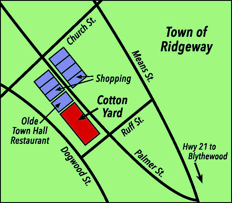The approximately 1/2 acre Cotton Yard lies just off Palmer Street and between Olde Town Hall Restaurant & Pub and Ruff Street. | Graphic/Ashley Ghere