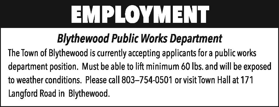 Employment: Blythewood Public Works Department