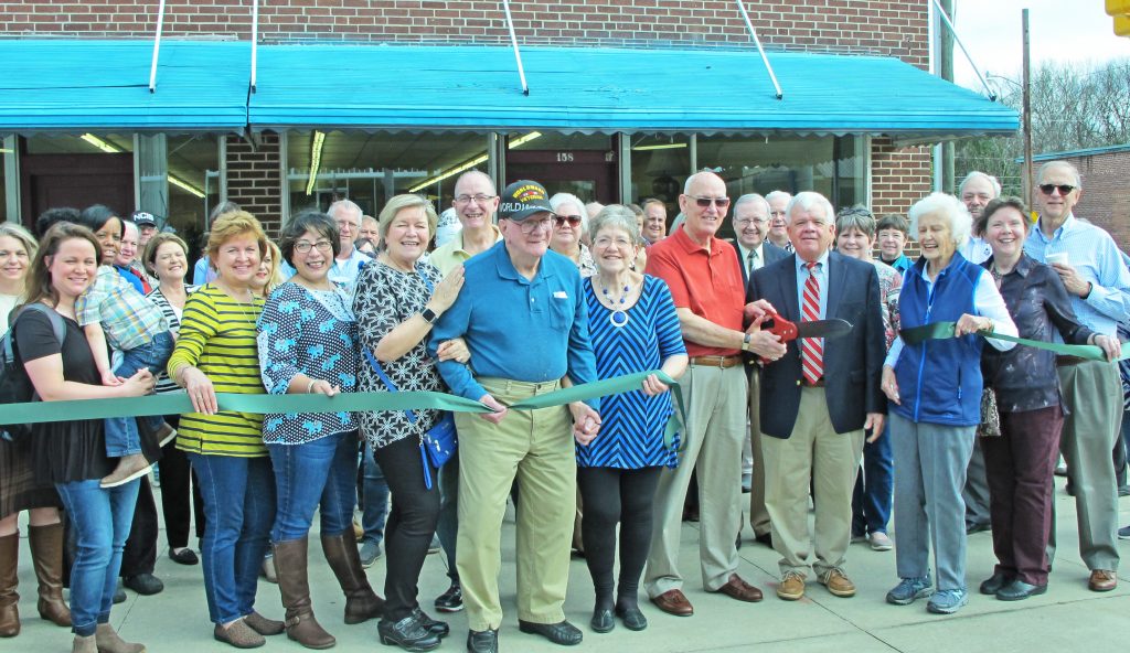 WINNSBORO – A large crowd gathered last week for the grand opening of Robert and Bobbie Pemberton’s Oldies & Goodies consignment store at 158 S. Congress in downtown Winnsboro. The ribbon line, from left, Tamara Day, holding Carter, 2, Bobbie’s sisters Mamie Turner, Stephanie Levy and Nancy Grogan, Bobbie’s father Robert Moak, the Pembertons, Mayor Roger Gaddy, Betty Harden, and Robert’s sister Marilyn George and her husband Joe.