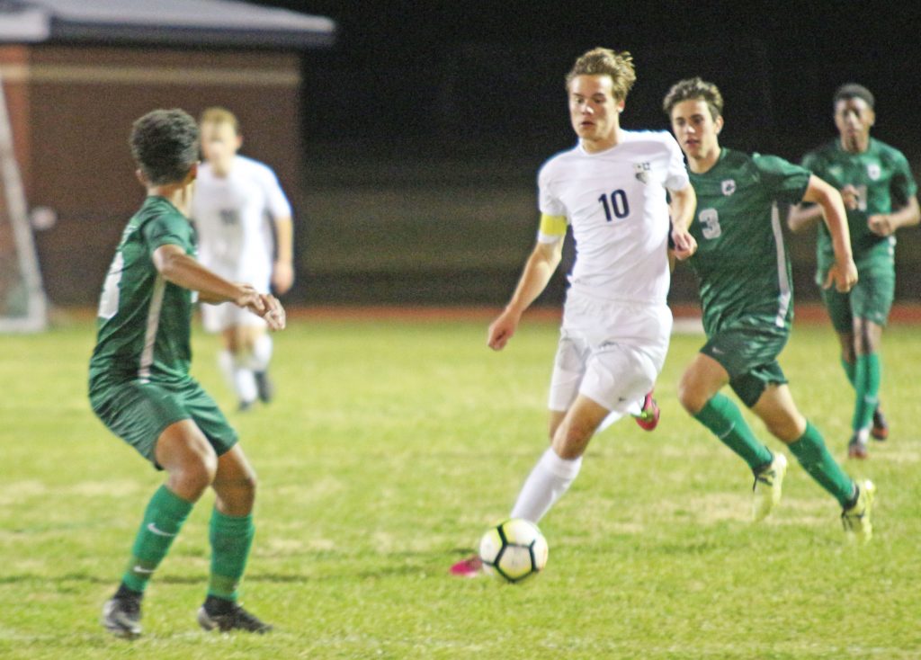 BLYTHEWOOD – Blythewood Soccer hit the field in the Nike Palmetto Cup at Saluda Shoals over Spring Break. The Bengals tied with Clover, 1-1, beat Gilbert, 3-1, and Hanahan, 4-0, and dropped a game to Cardinal Newman (1-4). The Bengals were back in action in Blythewood Tuesday night against region foe Dutch Fork. The Silver Foxes bested the Bengals 2-1. Above, senior forward Dalen Mickle (5) in the April 5 matchup with Cardinal Newman. Below, senior striker Logan Shay (10) in Tuesday’s game against Dutch Fork. The Bengals will host Heathwood Hall on Friday at 6:30.