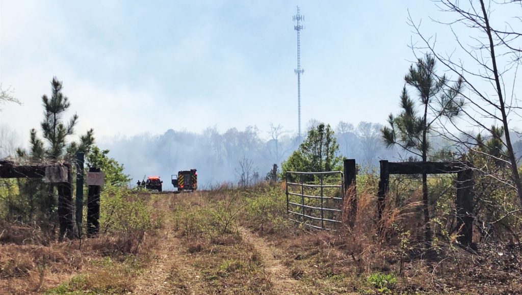 BLYTHEWOOD – A brush fire consumed about 10 acres of a 158-acre parcel on Langford Road, just outside of the Blythewood town limits on Sat., March 31.