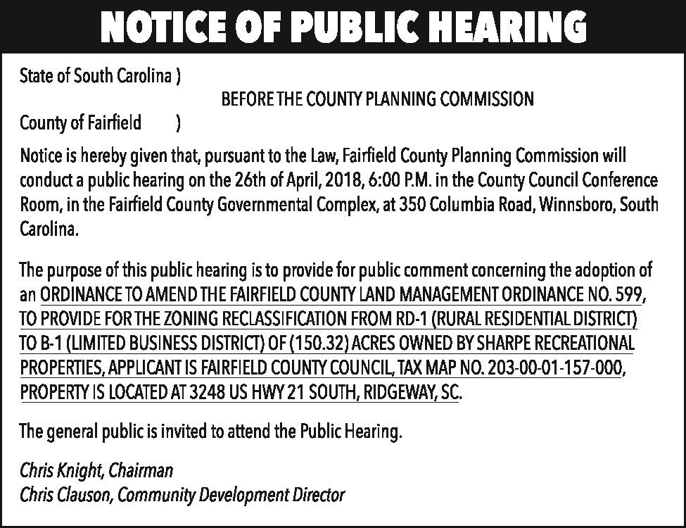 Notice of Public Hearing – Fairfield County
