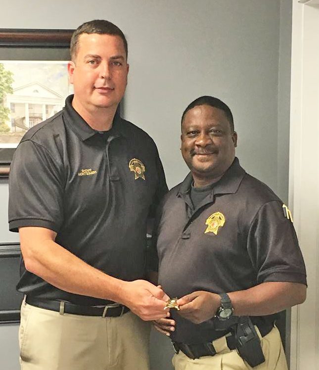 WINNSBORO – Fairfield County Sheriff Will Montgomery congratulates Deputy Oren Gadson on being promoted to Corporal. Gadson has worked in law enforcement for 24 years.