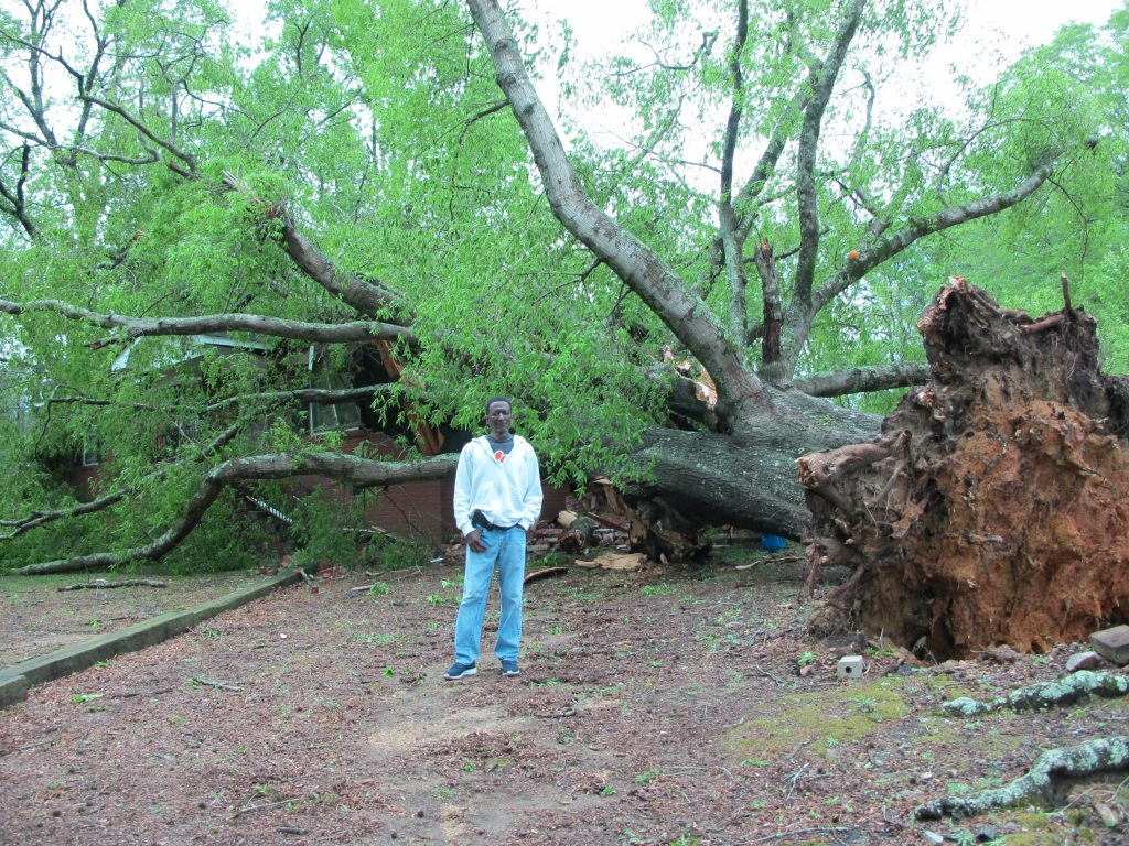 Some of the storm’s worst destruction could be followed from the Ridgeway area north, along Lake Wateree, to the Mitford area, as it toppled giant oak and pine trees in its path. Some of those trees crashed through roofs and sliced into homes causing heavy damage. Several roads were blocked by fallen trees.
