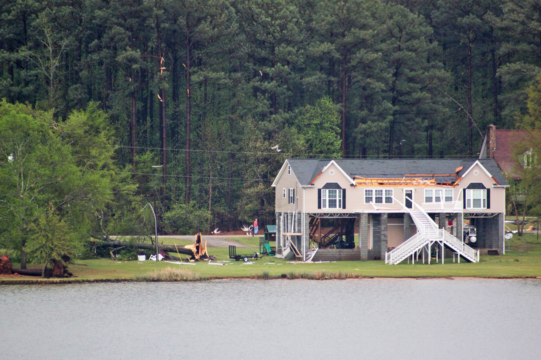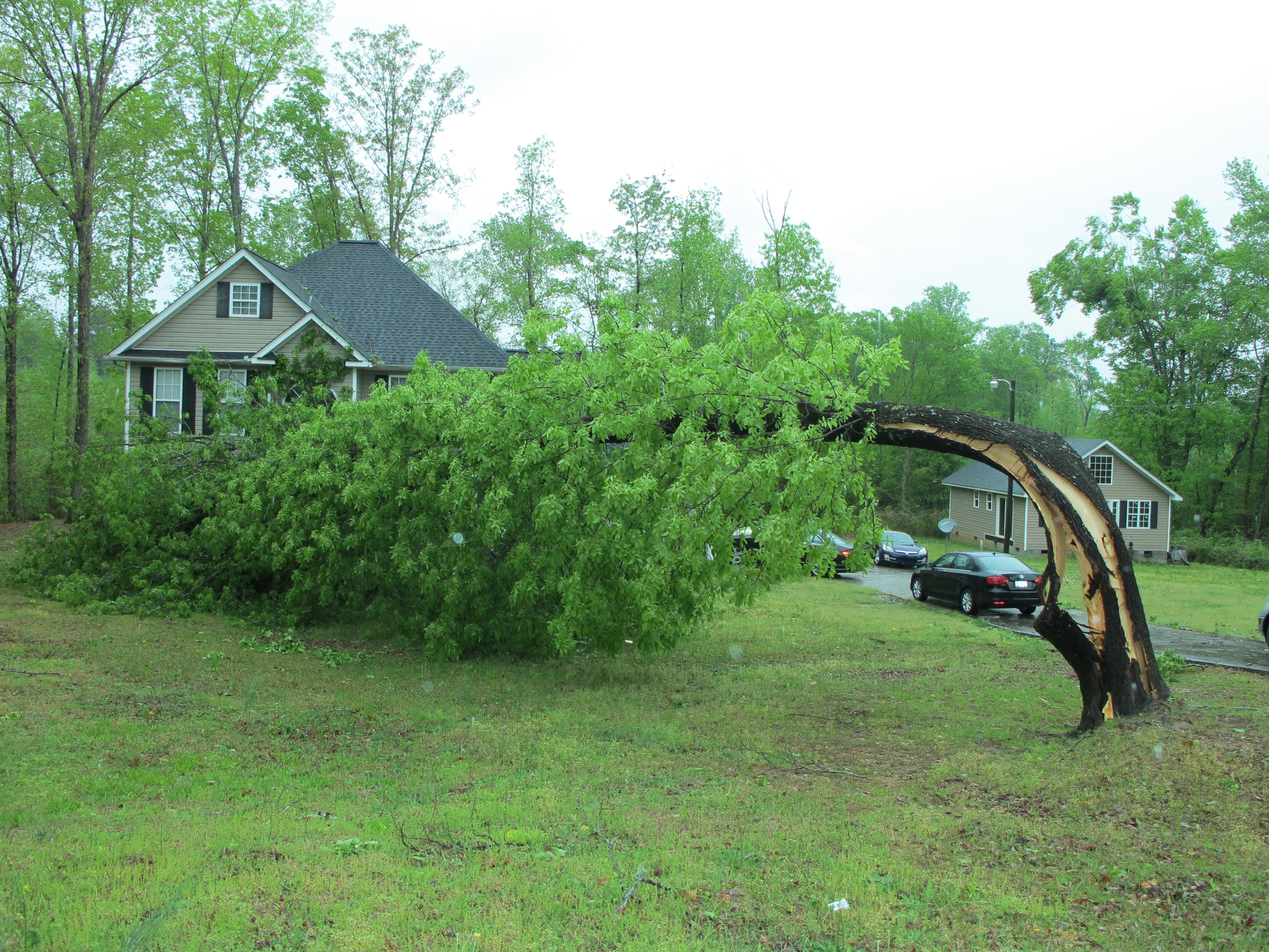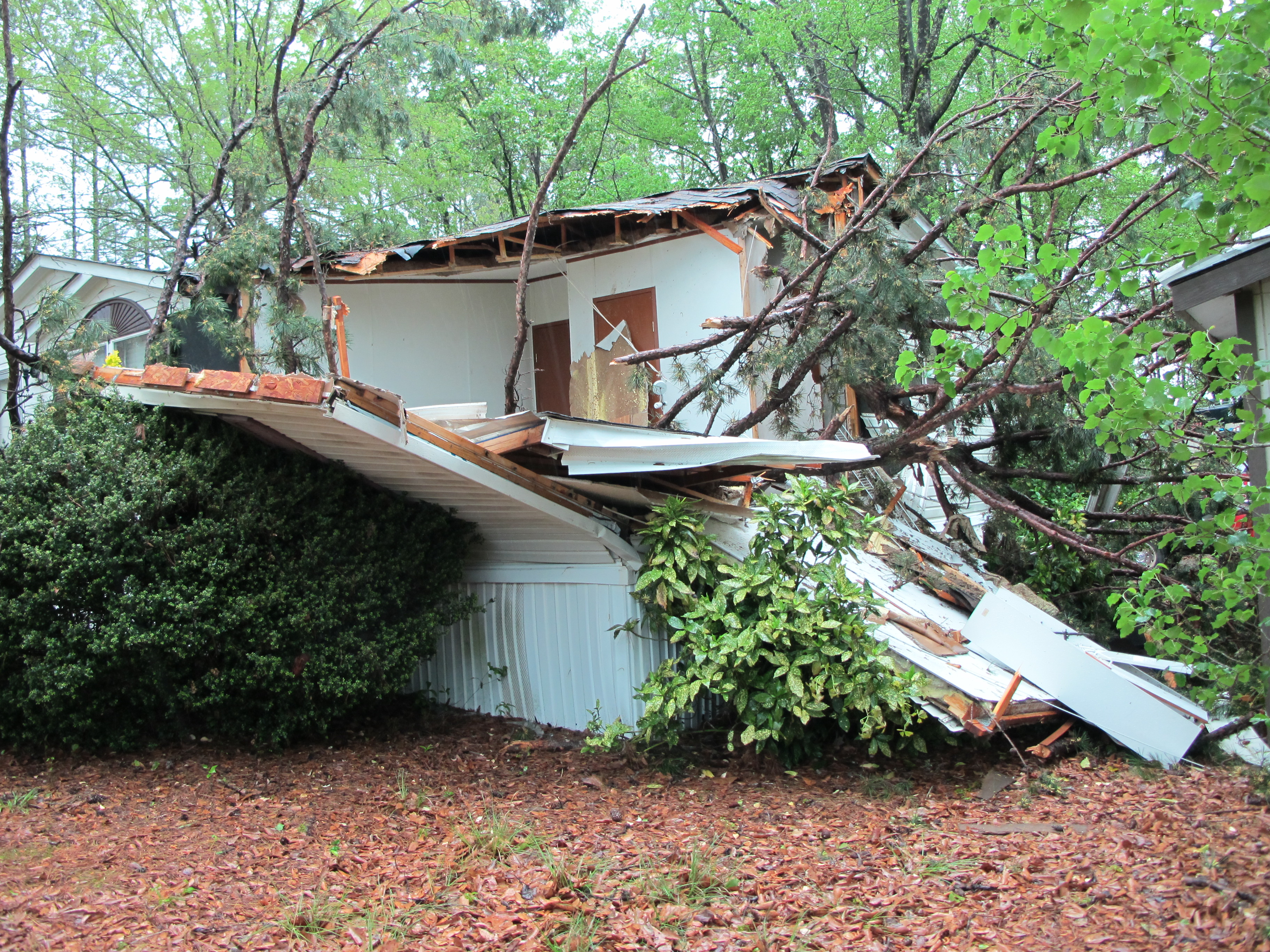 Some of the storm’s worst destruction could be followed from the Ridgeway area north, along Lake Wateree, to the Mitford area, as it toppled giant oak and pine trees in its path. Some of those trees crashed through roofs and sliced into homes causing heavy damage. Several roads were blocked by fallen trees.