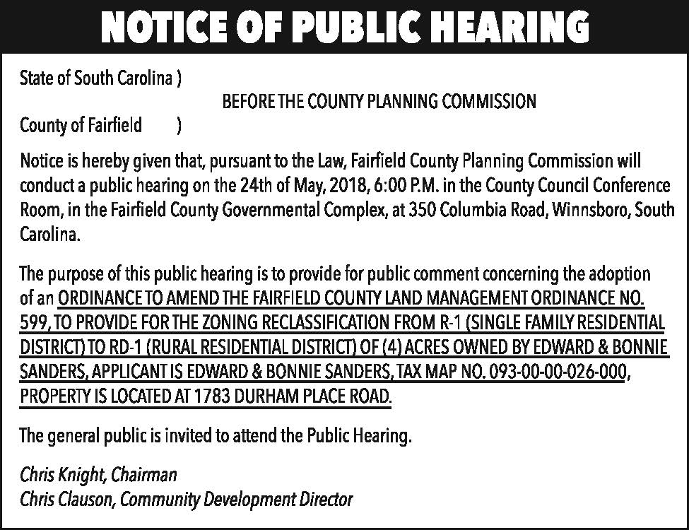 Notice of Public Hearing – Fairfield County Planning Commission