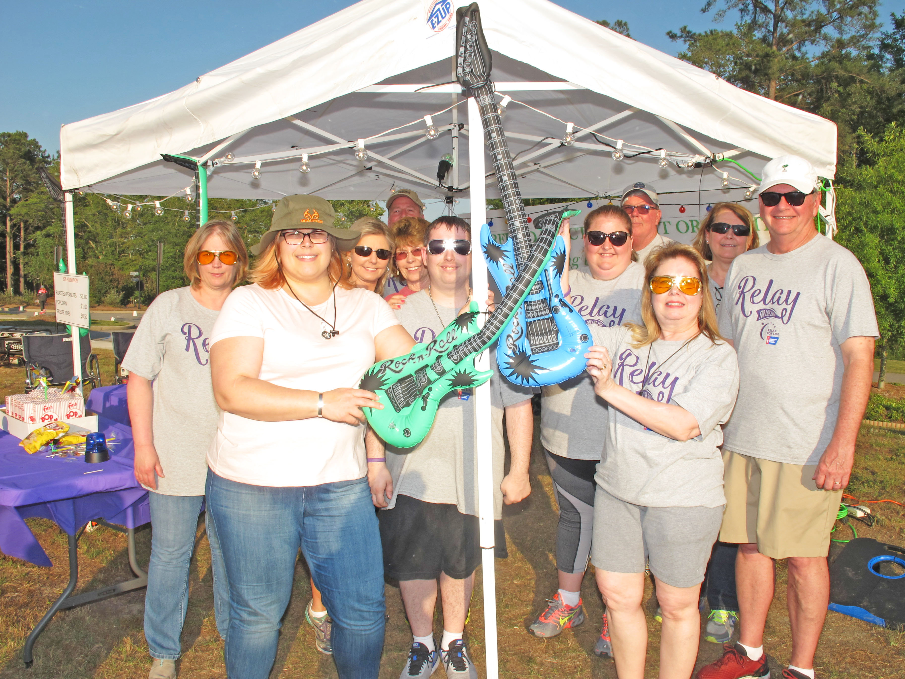 While the relay proceeded, the fundraising began in earnest in tents throughout the park sponsored by schools, companies and churches to name a few. The theme this year was rock and roll music and each tent featured a rock music scenario.