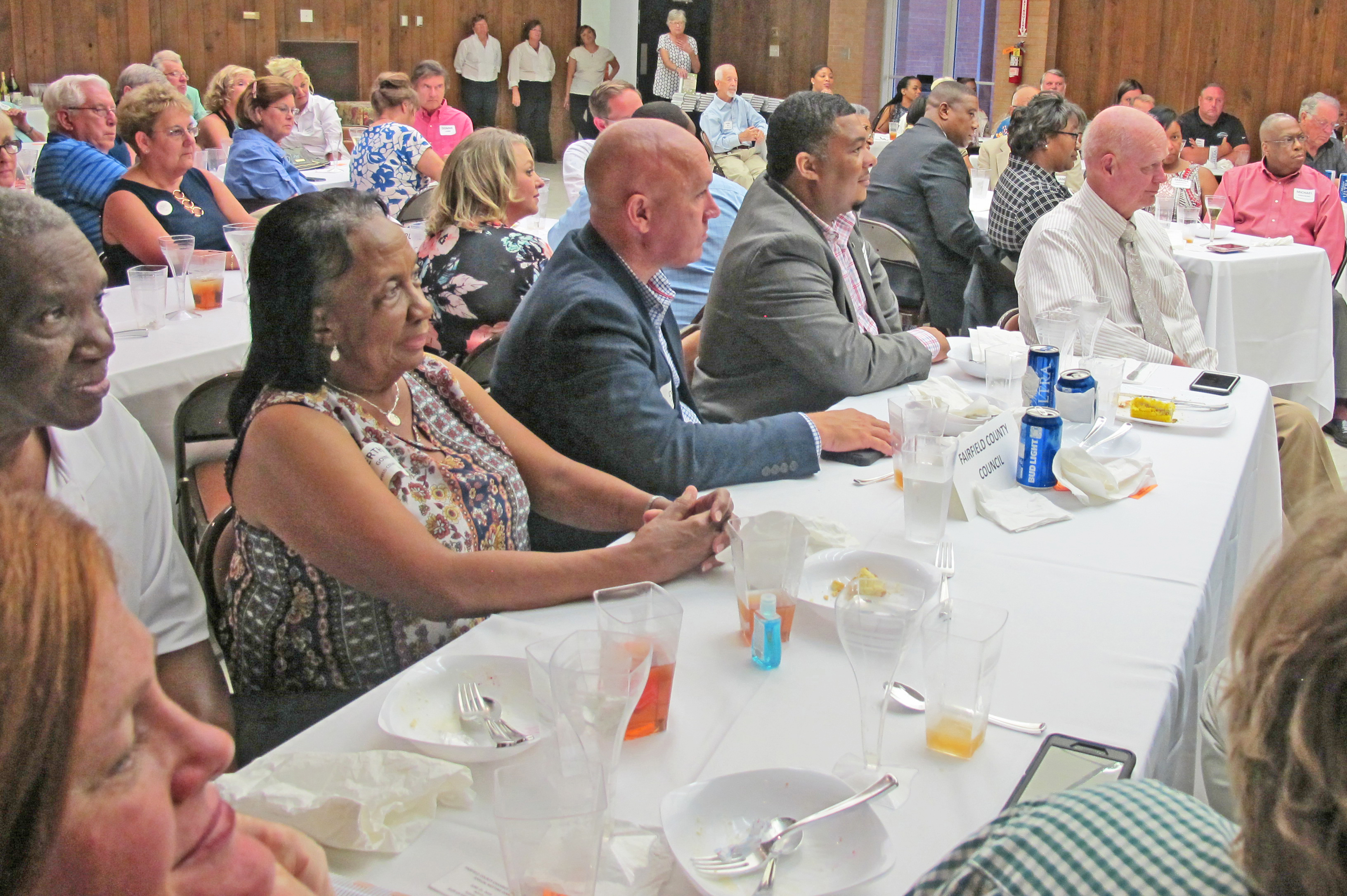 WINNSBORO – The 2018-19 Fairfield County Chamber board members were presented at the Chamber’s annual dinner last week. Front row (from left): Crystal Paulk, The Donut Guy; Robbie Martin, Bella & Blue Boutique, Cotton Yard Market and Palmer Street Market, Ridgeway; Lisa Kelly, TruVista Communication; Ronita Marshall, SCANA/V.C. Summer; Back row: Danielle Miller, Fairfield Middle School; Charlene Herring, The Ivy Veranda; Bob Prather, Vanity Stylon; George Brazell, The Mortgage Center; Vicky Melvin, Fairfield Electric Co-op. Not Pictured: John McMeekin, Winnsboro Town Council