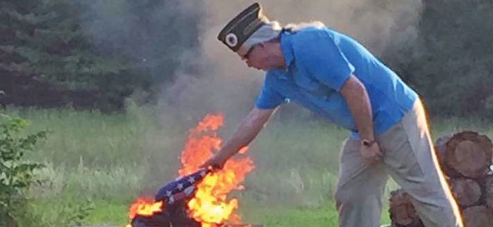 RIDGEWAY – Eddie Baughman, a member of Lake Wateree VFW Post 8346, participates in the Post’s annual flag retirement ceremony on June 14. The Post retired over 160 flags during the ceremony.