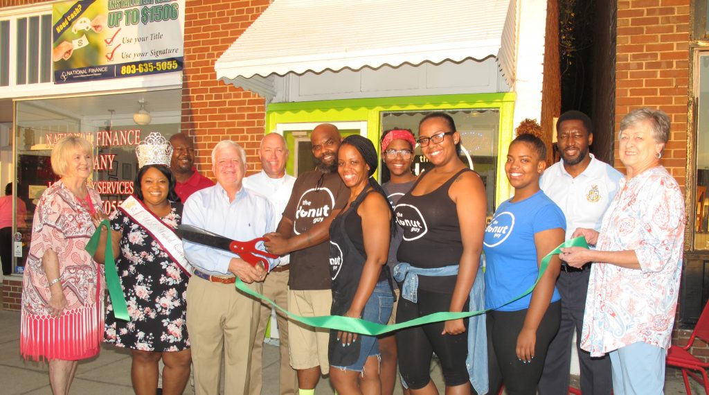 WINNSBORO – The Donut Guy owners, Shaun and Crystal Paulk, held a grand ropening Monday morning for their donut shop, located at 149 S. Congress Street. The Fairfield Chamber of Commerce celebrated the occasion with a ribbon cutting. The shop opened in January, 2017, but the Paulks say they have just now settled into regular hours and are open six days a week: Tuesday, Wednesday and Saturday, 7-4; Thursday and Friday, 7-7 and Sunday, 12-5.