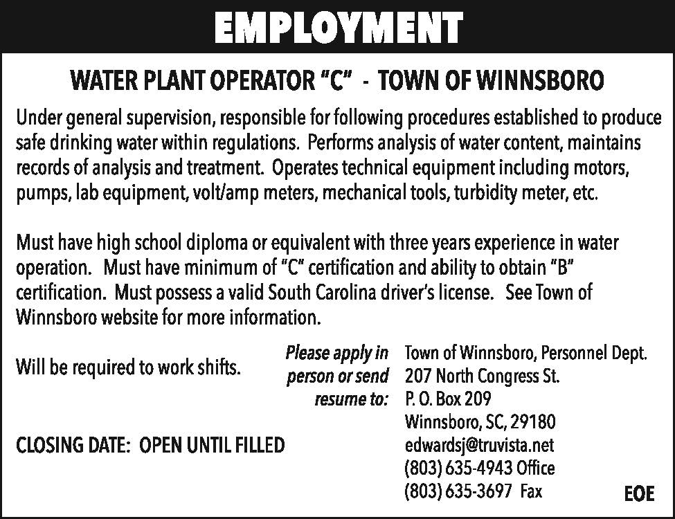 Employment: Water Plant Operator C