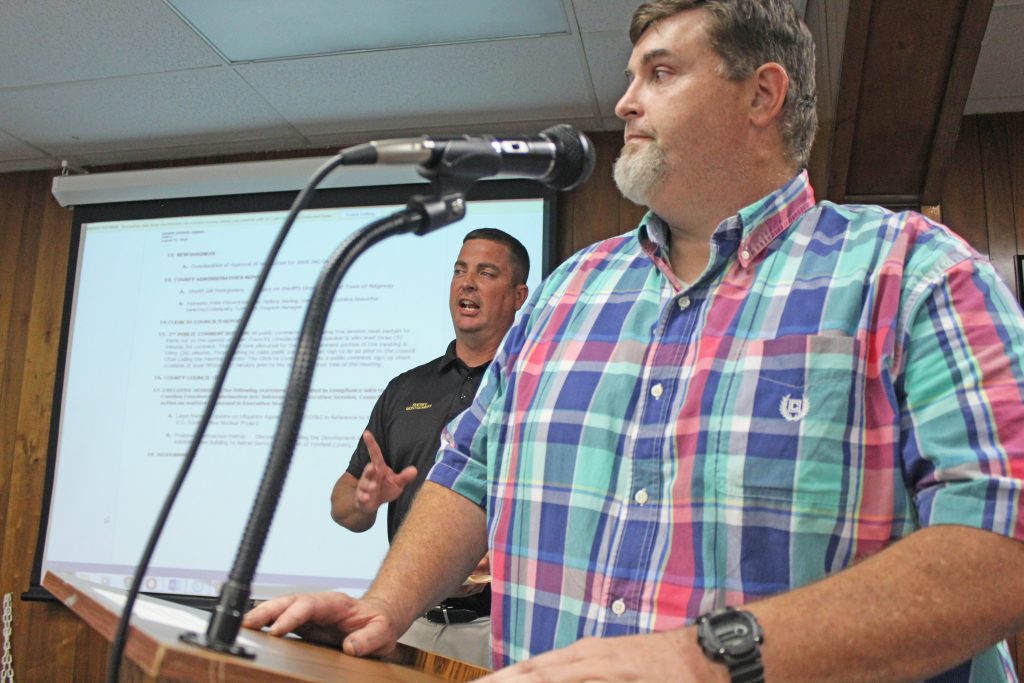 Speaking at Monday night’s County Council meeting, Sheriff Will Montgomery said off-duty deputies would spend about six hours per day policing the town. That may increase if and when Ridgeway sees a need to increase police presence, he said.