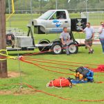 - Rescue Squad member Brad Williams operating a 3 to 1 pulley system used for difficult angle rescues with Chris Gantt and Sallie Williams – also members.