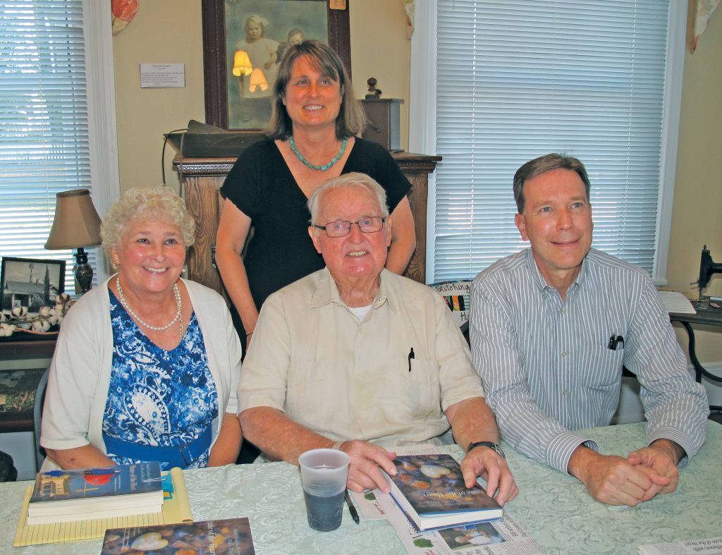 BLYTHEWOOD – Blythewood writers who contributed stories to the third volume of the popular State of the Heart – South Carolina Writers on the Places They Love series, were featured guests at a book party held last week at the Langford-Nord House, sponsored by the Blythewood Historical Society. From left, writers Jane Zenger, Pat Robertson, Chris Horn and (standing) the editor of the book, Aida Rogers. The third volume of State of the Heart was recently released by the University of South Carolina Press. For sale currently in hardback at Uptown Gifts in Columbia for $39.99. For more information about availability of the book, go to www.sc.edu/uscpress.
