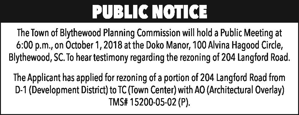 Contact us: (803) 767-5711 | P.O. Box 675, Blythewood, SC 29016 | info@blythewoodonline.com