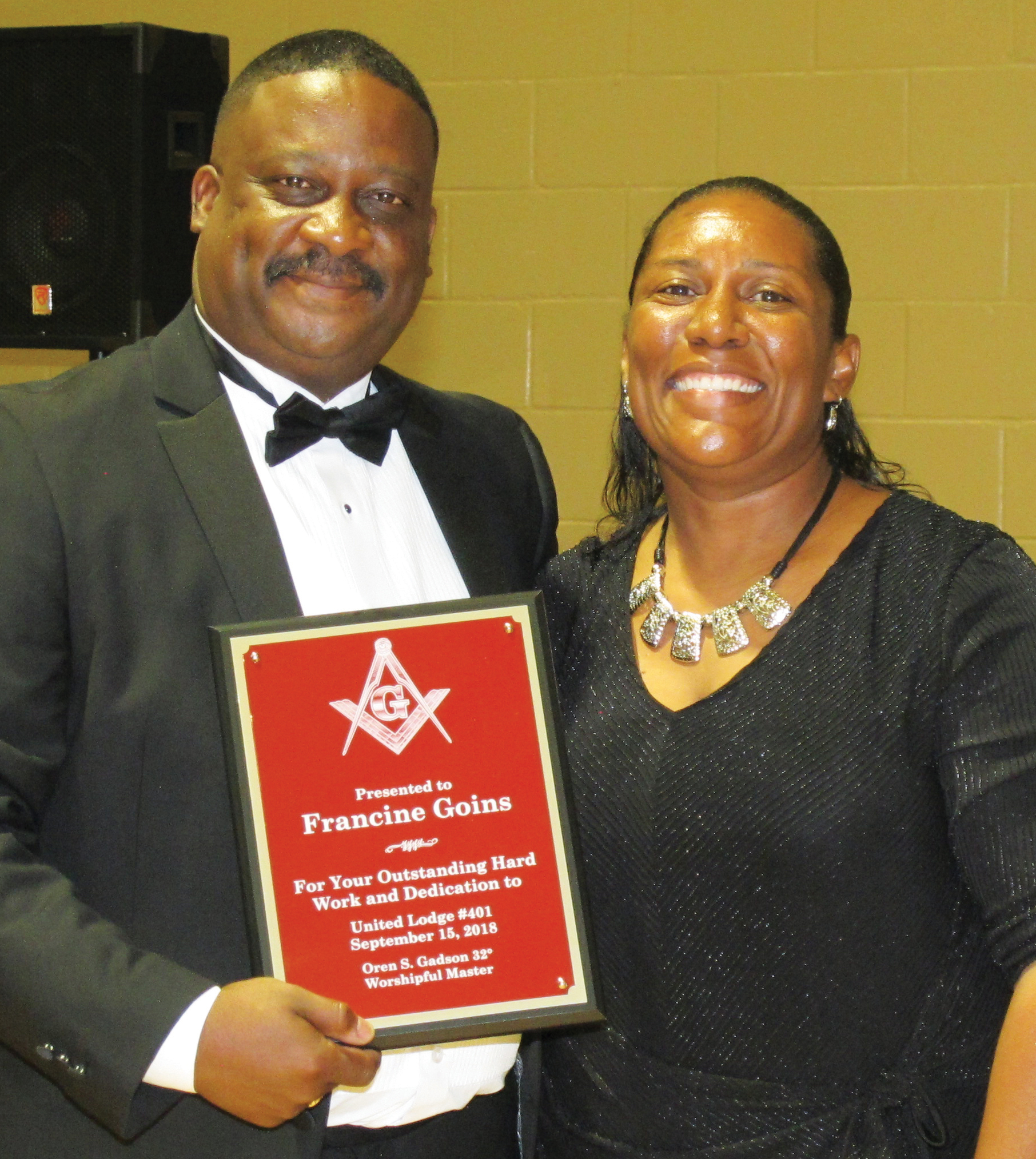 Earl T. Bonner was lauded for his 40 years of membership and service. Elaine and Ray Gadson were thanked for the many meals they prepare during the year for events at Ray’s Lodge. Francine Goins was appreciated for her support and dedication.