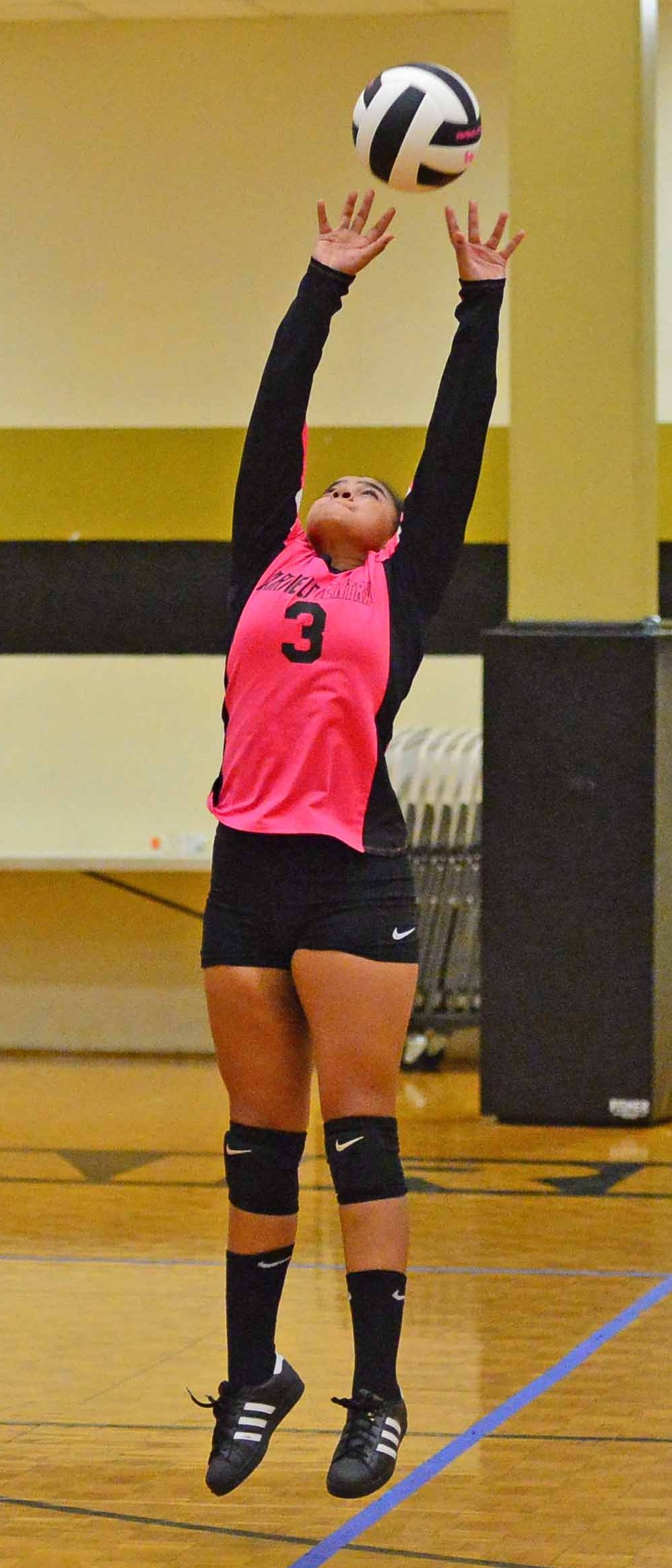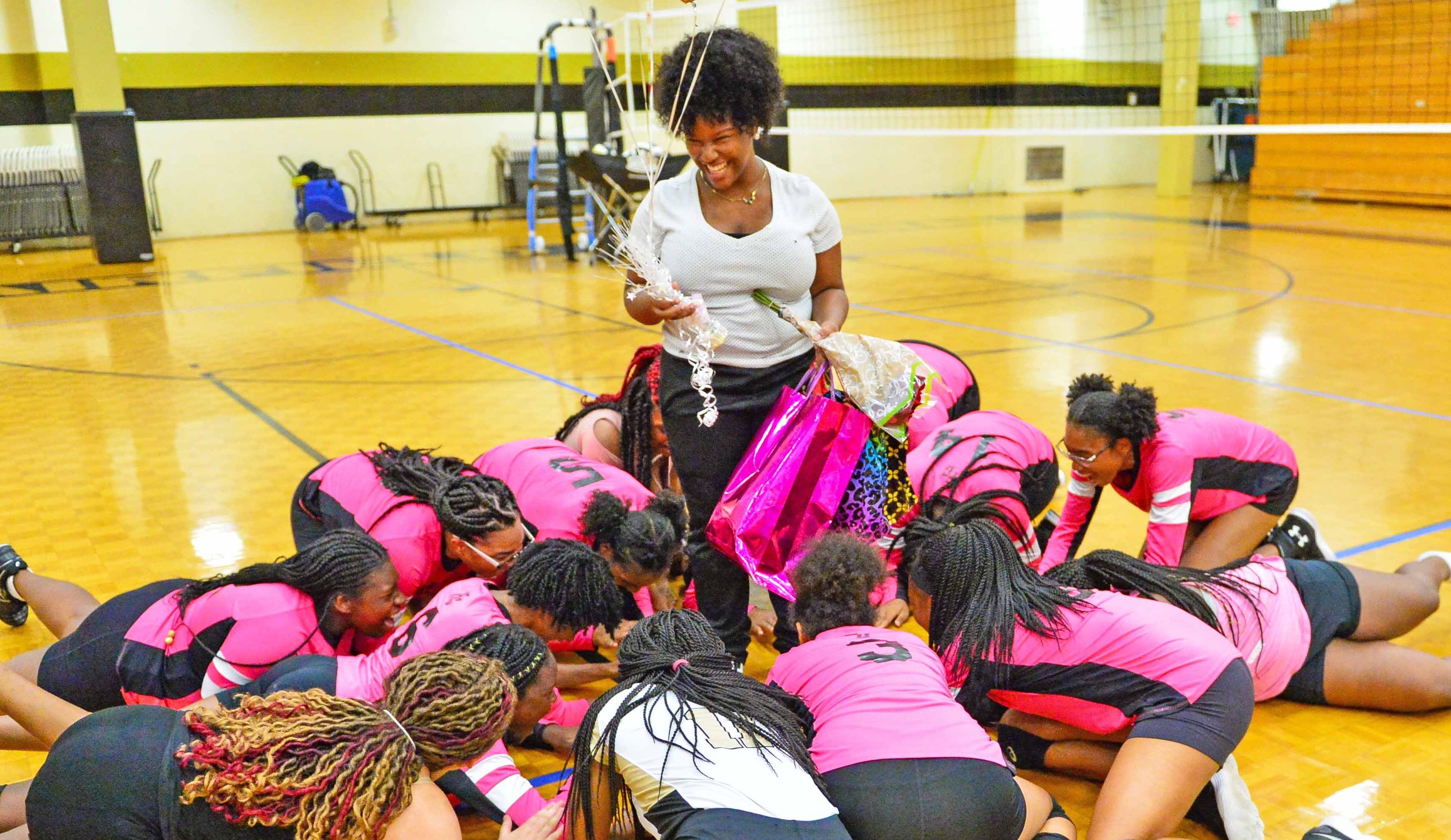 Griffins volleyball dropped their contest in three sets by the scores 7-25, 7-25, 8-25. Pictured below, the volleyball team honors Adriana Ashford, senior manager for the team.