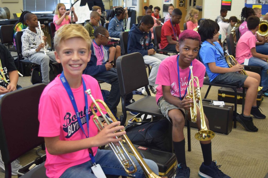 BLYTHEWOOD – Faculty, students and staff at Muller Road Middle School PINKed Out! on Oct. 10. to raise support for cancer research and the Walk for Life. Ms. Cuffy’s first period sixth grade science, above, and 6th grade band members Evan Williams and Jordan Singleton, pictured below, show off their PINK spirit. See photos from the PINKed Out! athletic events.