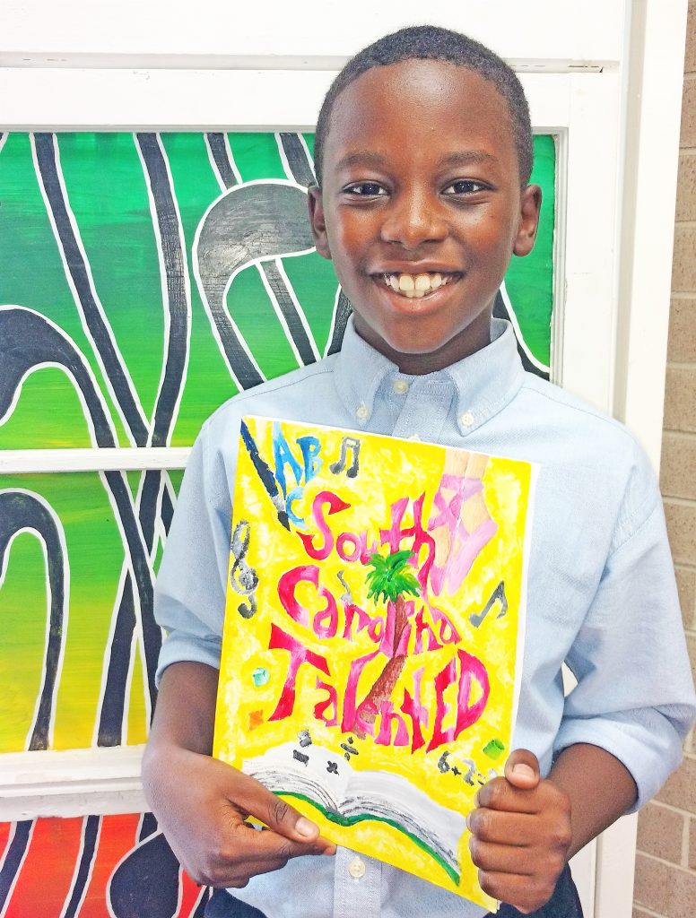 WINNSBORO – Fairfield Magnet School for Math and Science (FMSMS) art student Kingston Belton won 1st place in the Elementary division of the 2018 South Carolina Consortium for Gifted Education (SCCGE) Conference Program Cover. Kingston will be receiving a $100 prize.